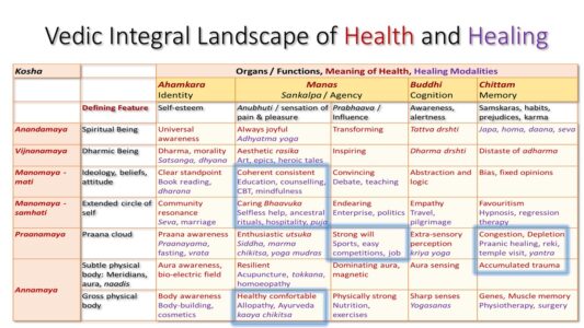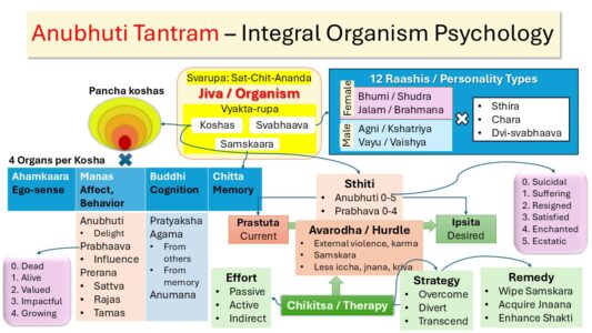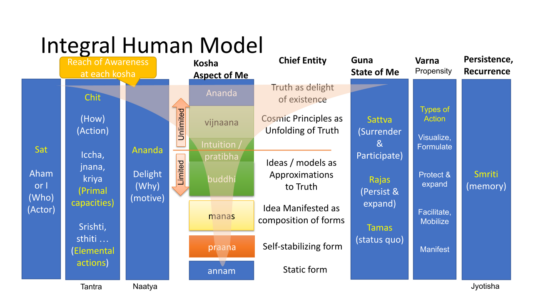 - Common framework to integrate numerous psychology theories, both western and Vedic